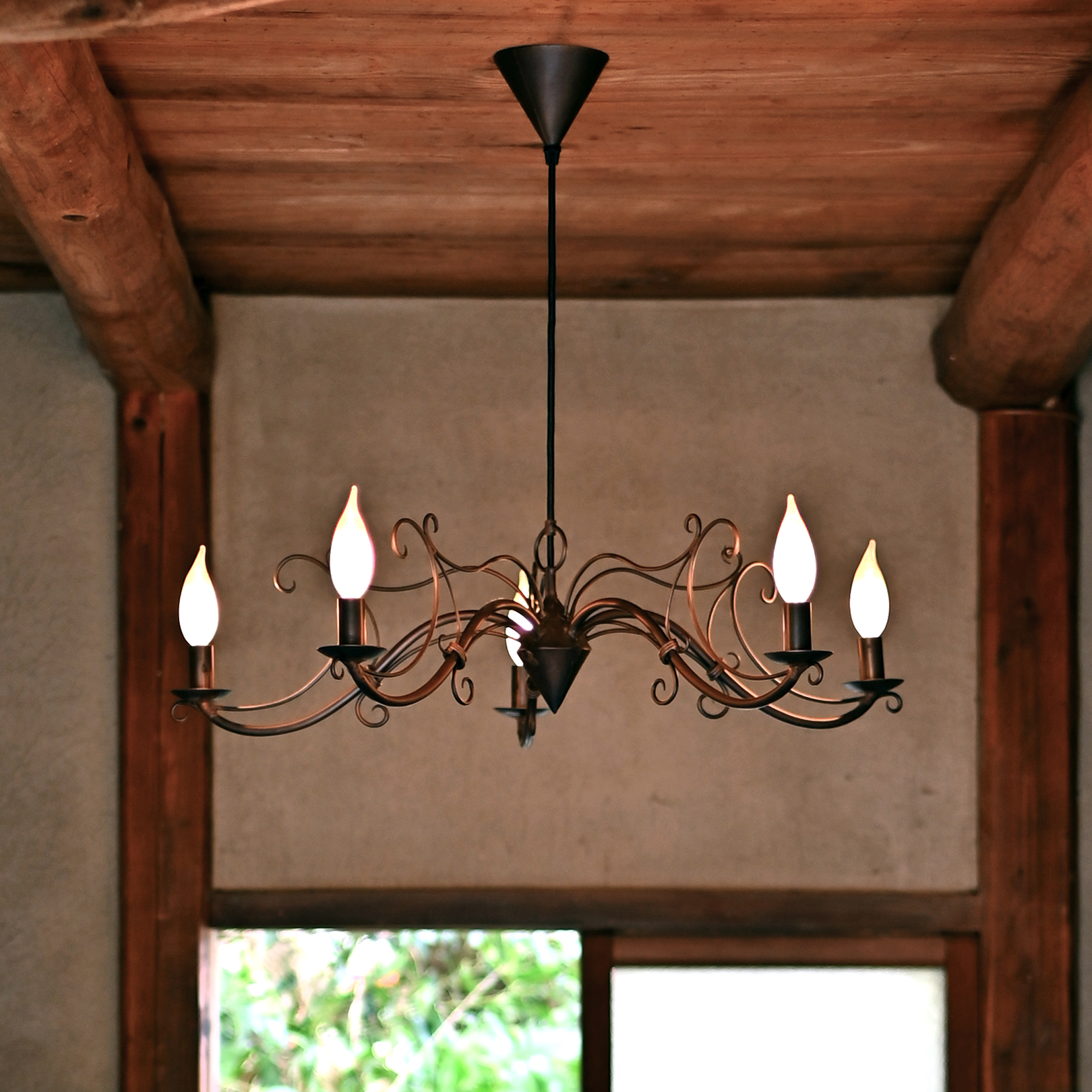 程よい存在感で日常に溶け込むシャンデリア。天井高が限られた空間でも美しく収まるよう、高さを抑えたデザインで制作しています。
