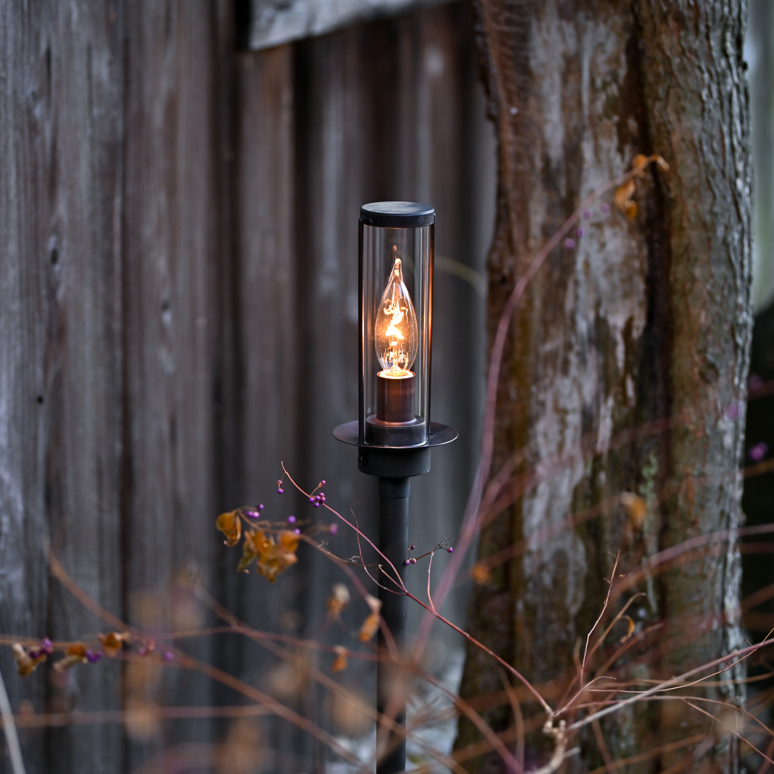 「庭にろうそくを灯すように」と考えた庭園灯。そっと足下を照らし、石や木々の陰影を深めます。専用の杭を用いポールを立てる防雨構造の屋外灯です。お庭に合わせた照明計画のご相談も承ります。